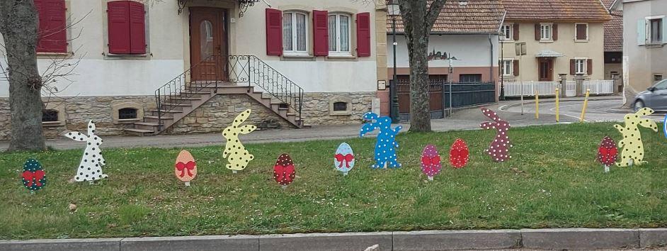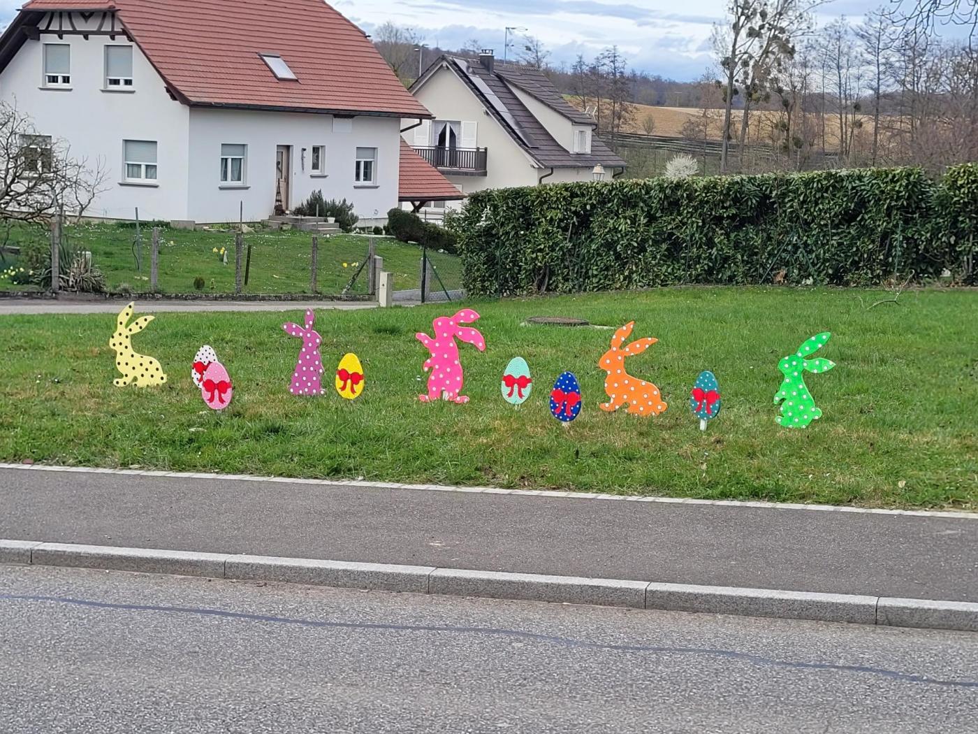 La décoration de Pâques a été mise en place il y a une dizaine de jours, et elle illumine depuis notre village et suscite l’admiration des usagers de la RD419.